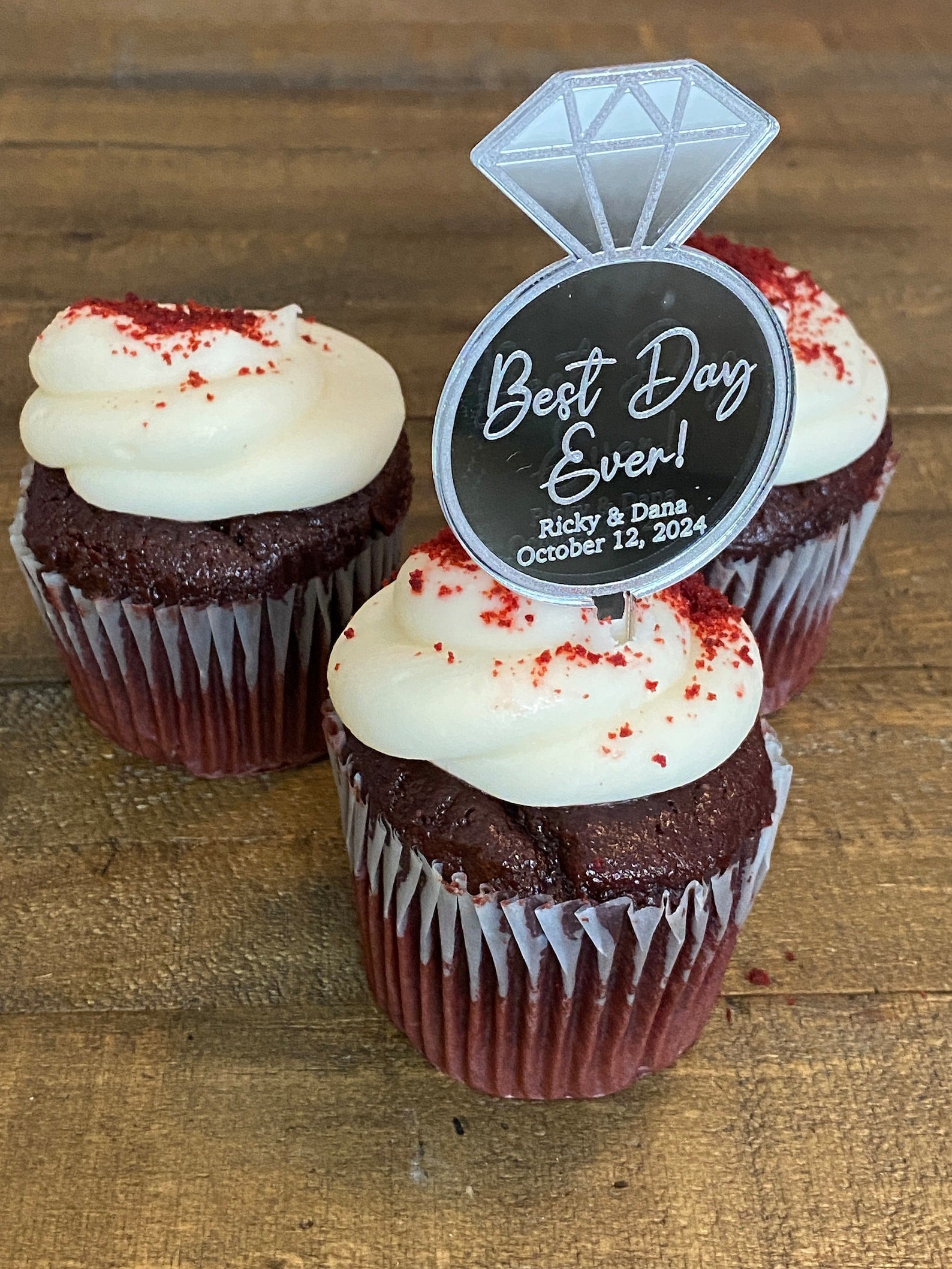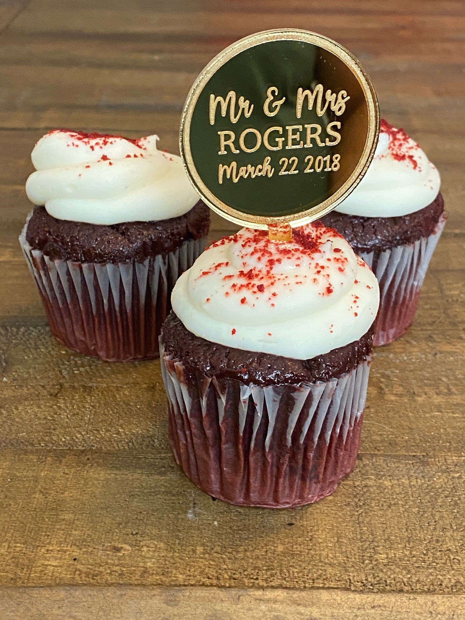 Make your special celebrations even more memorable with our custom MIRRORED acrylic cupcake toppers. Order today and let us help you create the perfect finishing touch for your dessert table!